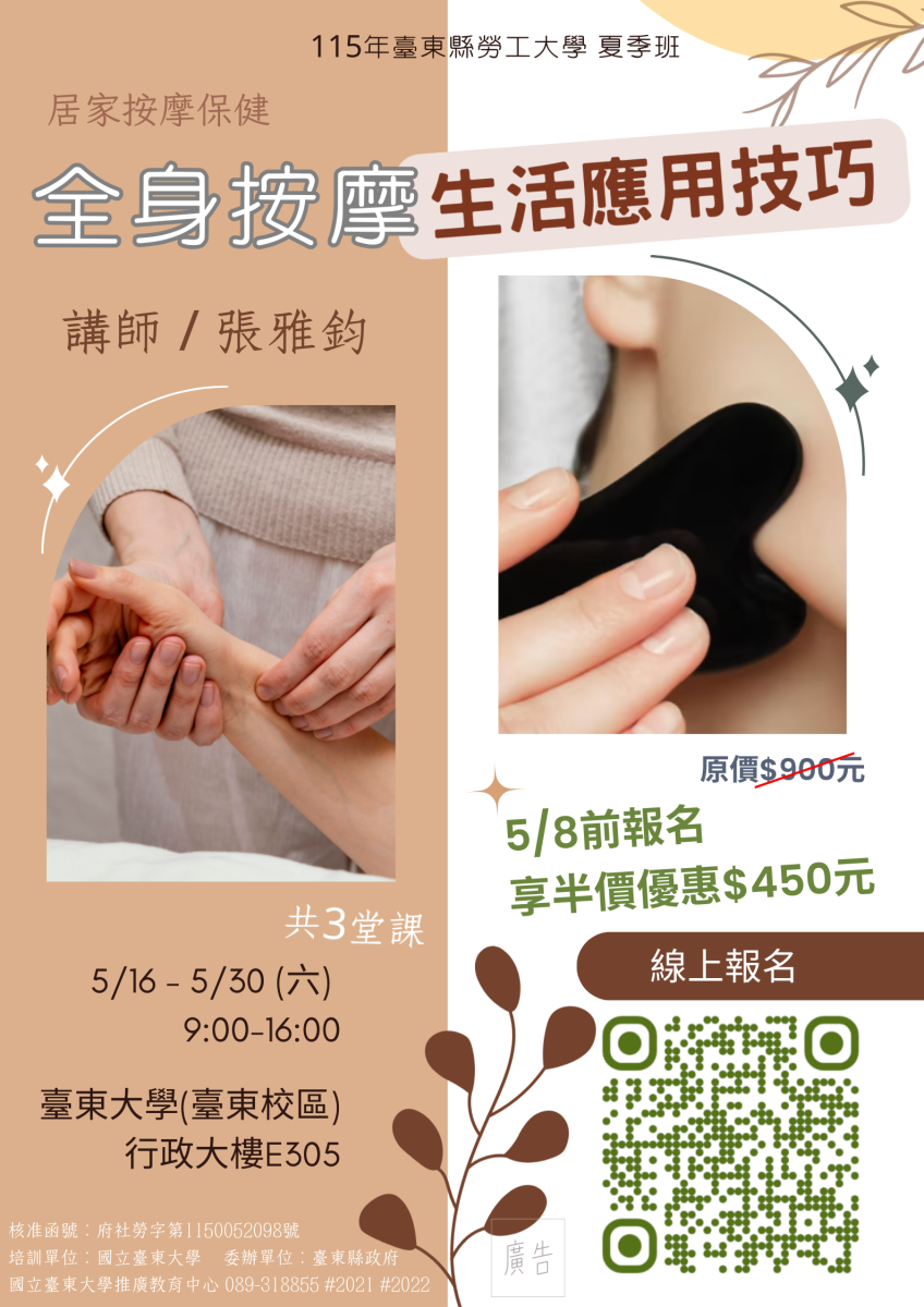 [115年夏季班] 居家按摩保健 - 全身按摩生活應用技巧
